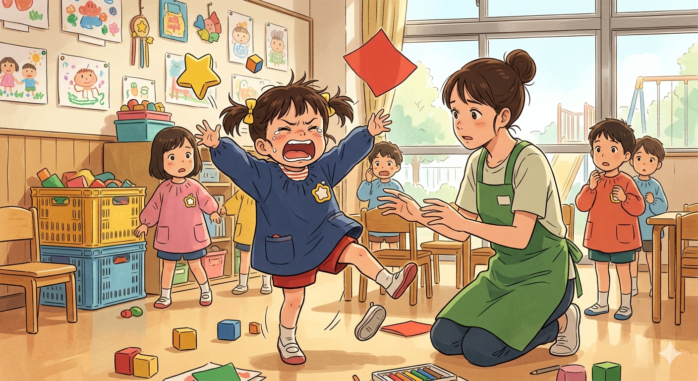 その時、先生や周りのお友達も慣れている感じで、「またか」といった具合でした。長女が冷静さを取り戻すまで待っている感じです。