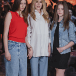 前髪を作り、トム・クルーズと婚姻していた時を思い出す外見で、2人の娘のサンデー(17)とフェイス(14)と手を繋いで、美しい三姉妹のような親子が登場を会場を盛り上げた。