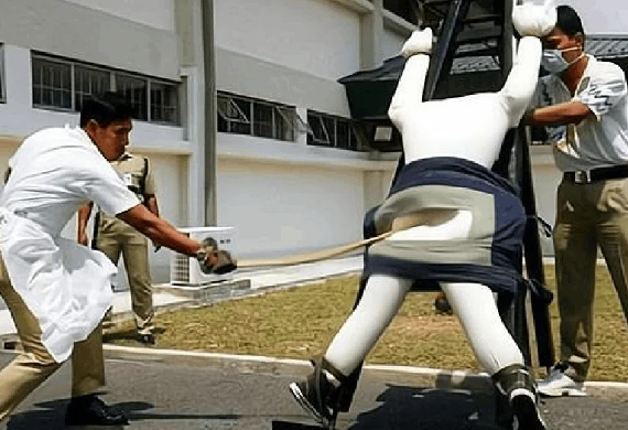 1.2メートルの鞭で160km/h、実際は執行中に失神する。